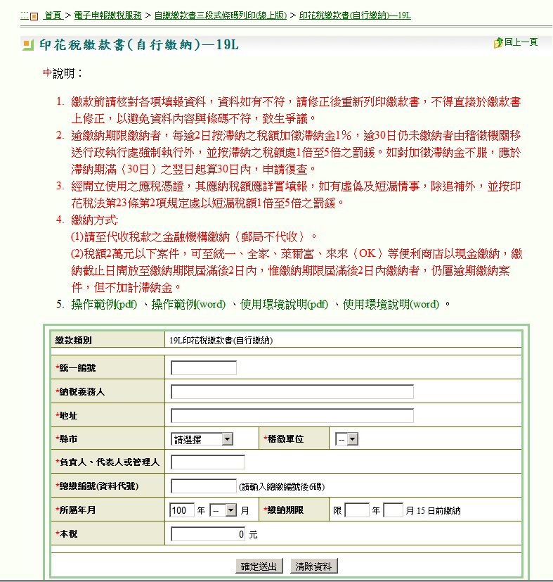 2.請在網址的地方KEY入以下網址:http://www.etax.nat.gov.tw/wSite/sp?xdUrl=/wSite/pbc/PBC_n_19L.jsp&ctNode=11738